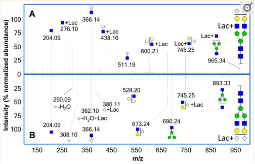 用LC/MS或LC-MS/MS检测赖氨酸肽段是否有乳酸基团的特征峰,这是经典方法,也是最早用于鉴定Kla修饰的方法。这个方法的优点是精准全面。不但能鉴定是否有Kla修饰,还能通过读谱确定修饰的具体位点。特别适合开创性高的课题。