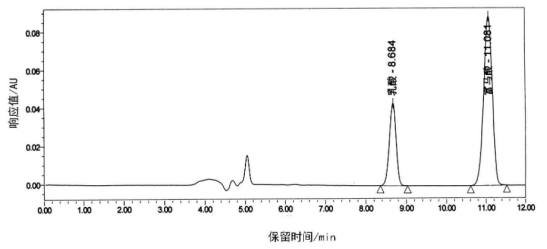 这个方法使用时,需要注意的是植物体系中许多小分子有机酸会对乳酸检测造成干扰,使乳酸在色谱检测时出峰不稳定且混有杂峰,无法很好地判断乳酸的出峰。需要改变流动相,改变流速等进行条件优化。